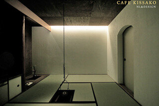 【CAFE KISSAKO】 住宅の一部分を長年の夢であったカフェと茶室にリノベーションした事例です。建具や床の間の材料など、改修工事で発生した廃材をできるだけ再利用しました。時々、茶道教室が行われています。