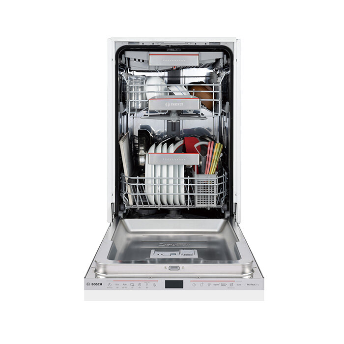 BOSCH(ボッシュ)社の45cm幅の深型ビルトイン食洗機 食器や鍋をまとめて洗浄できる大容量。 食器や鍋を高温で洗えるので衛生的で油汚れもすっきり洗いあがり、使う水の量はシンクでの食器洗いと比べて少なくなります。ゼオライトシリーズ(SPI6ZMS016)スタンダードシリーズ(SPI4HMS016)2機種展示してます。