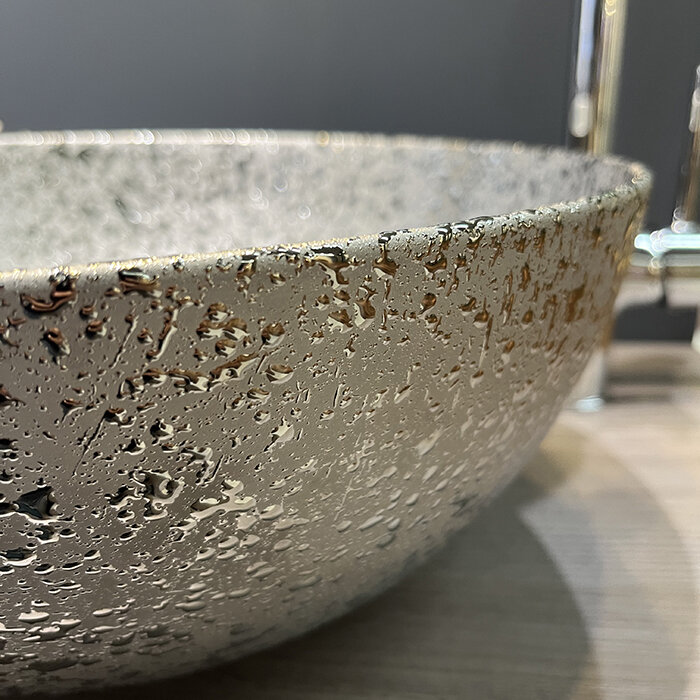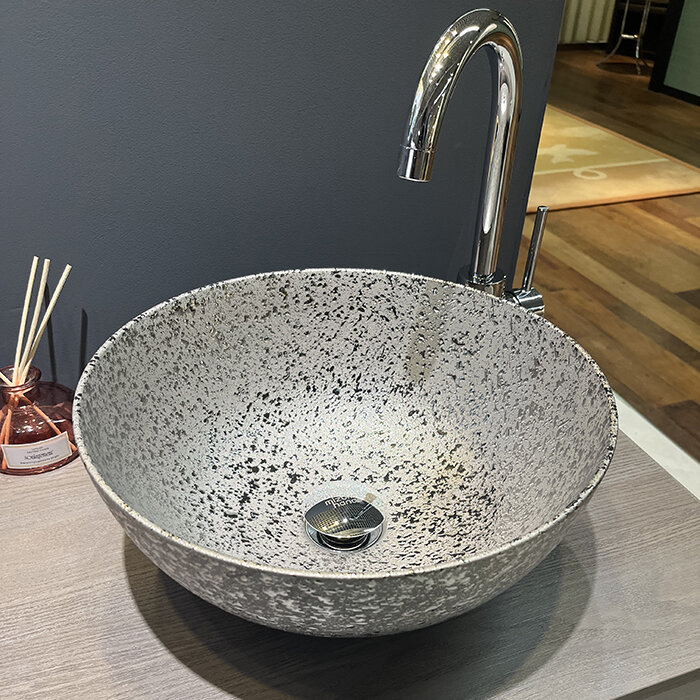 落ち着いたシルバーの陶器製ボウル。同じ大きさでゴールドも用意してあります。 派手さは無い色合いなので、一般住宅にもお勧めです。 和風の空間にも合う、他にはないボウルです。