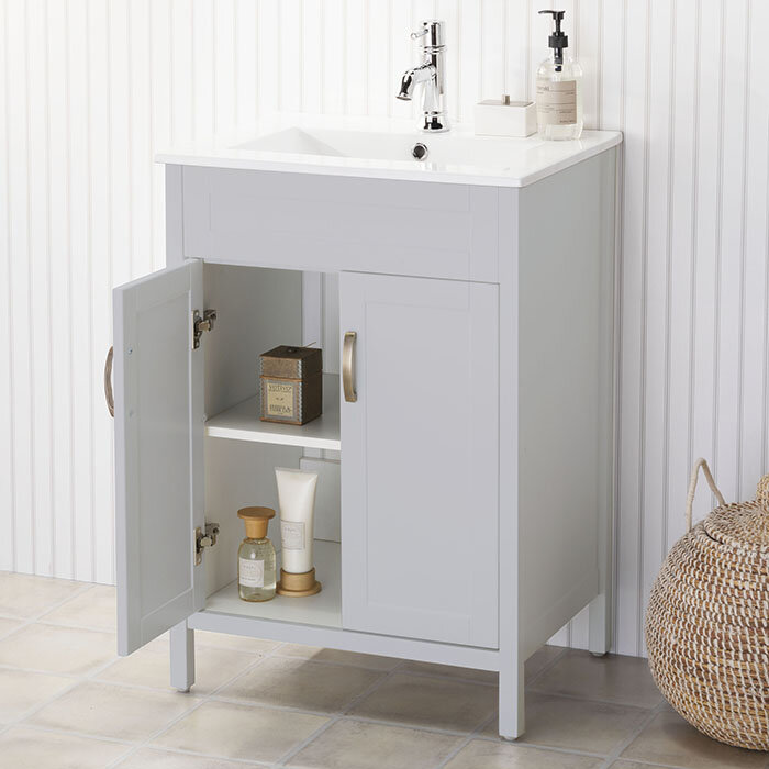 オーバーフロー付きの洗面ボウルが付属された洗面キャビネットです。 収納内部には柳板が1段ついています。 本体は木製なので、底板を現場加工して頂ければ床配管でも使えます。 色違いでグリーンもあります。